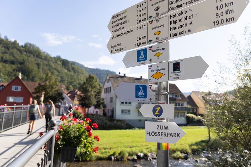 - Beschilderung & Infotafeln: 2024 haben wir das gesamte System auf den aktuellen Standard des Schwarzwaldvereins gebracht. Zusätzlich entwickelten wir einzigartige Flößer-Infotafeln, die durch kreative Gestaltung und Erzählungen von Ulrike Beyerlein für alle Altersgruppen begeistern.