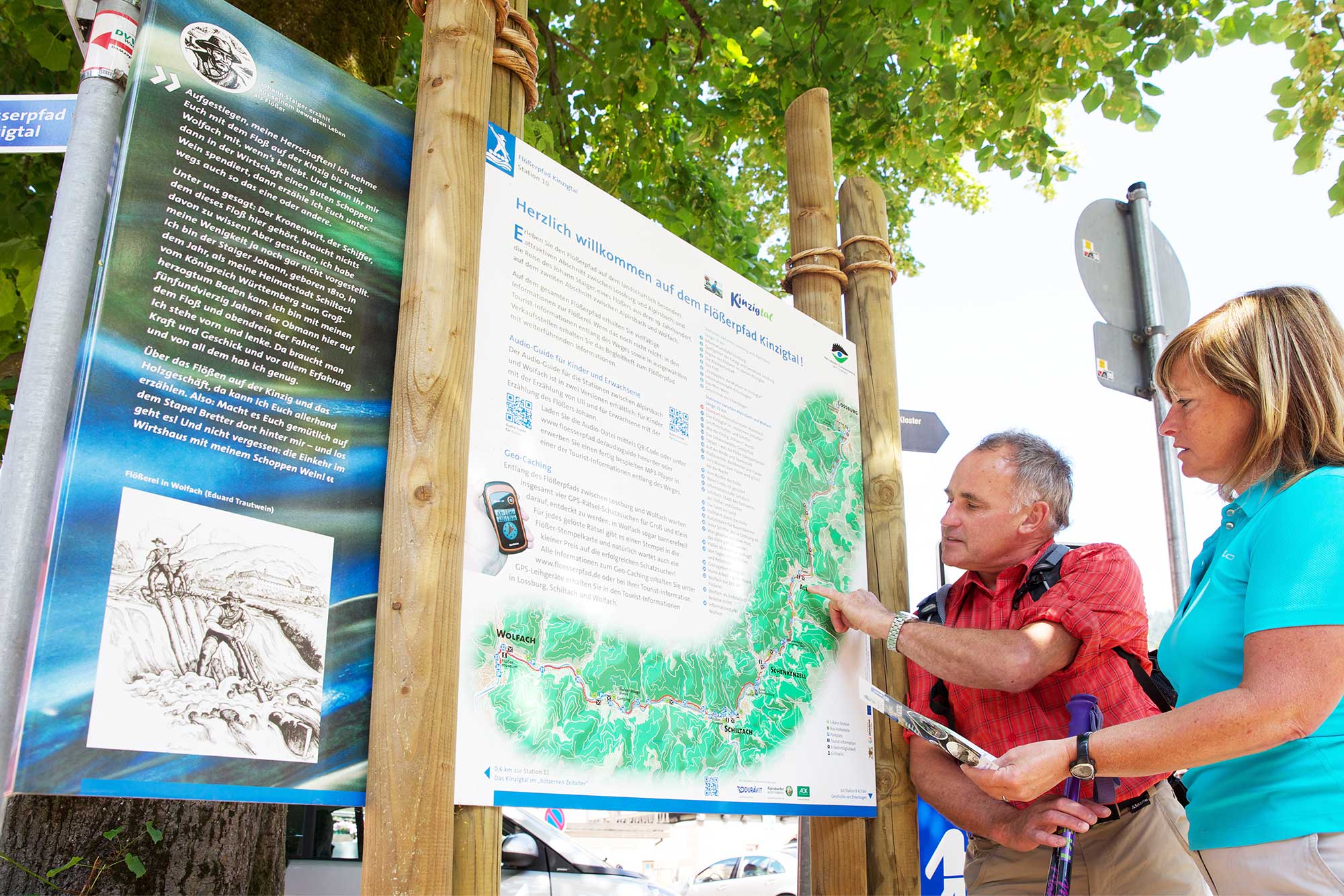 Der Flößerpfad Kinzigtal wurde von uns komplett neu konzipiert. Es folgte die Umsetzung von hochwertigen Thementafeln und interaktiven Elementen entlang des gesamten Weges sowie die laufende Pflege und Begleitung der Kommunen am Flößerpfad.